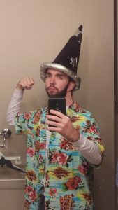 On Saturday was our first band competition! We had a 9:00-12:00 rehearsal that morning to prepare one final time and load the trucks, and then we headed out for the competition later that afternoon. For rehearsal, I decided to dress up in a ridiculous(ly handsome) outfit and help galvanize the ensemble with my look and share the excitement of a show day! We passed around my wizard hat to a different person on the drumline for each repetition we did, and that helped boost the mood during our long rehearsal.